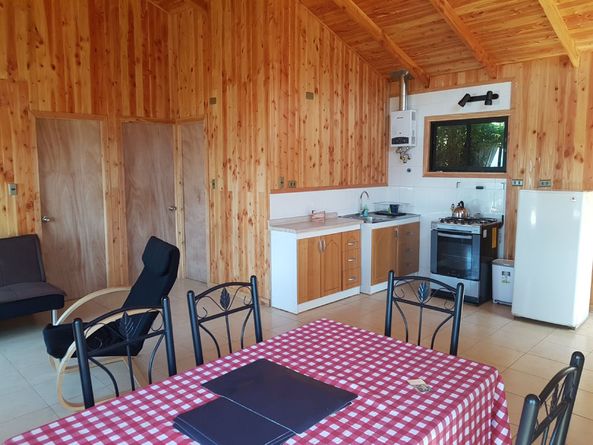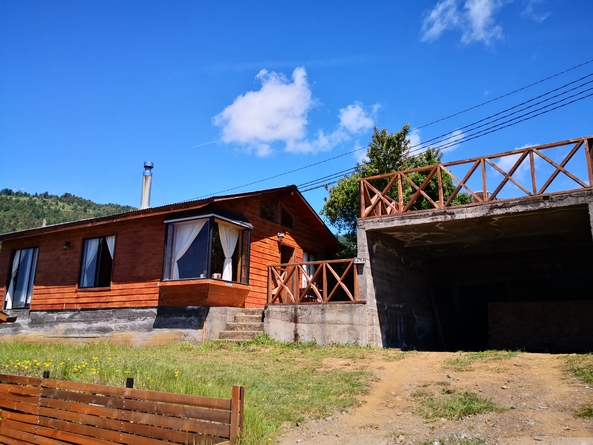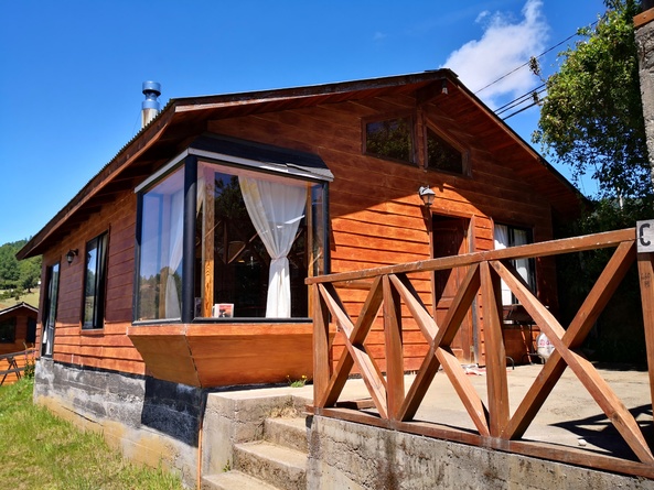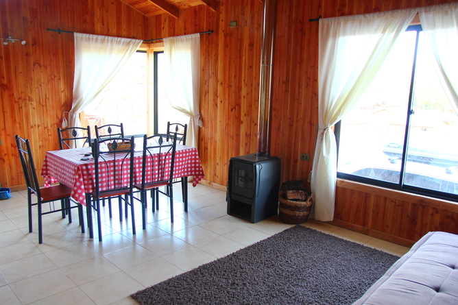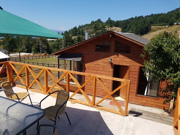 Cabaña en Licanray, Lican Ray, comuna de Villarrica. Consta de 55 m2 y 40 m2 de terraza. Está ubicada a 3.8 km del lago Calafquén (A 8 minutos del lago en auto), con vista a parte del lago y también con hermosa vista al volcán Villarrica, cercana a bosque nativo. Cuenta con completo equipamiento hasta para 6 personas, considerando: