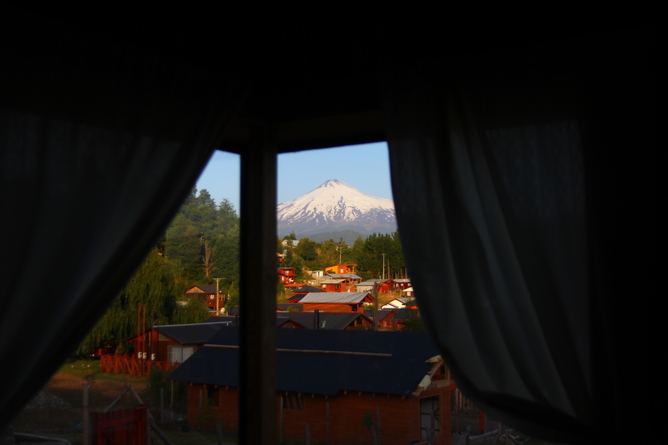 *2 dormitorios, uno matrimonial con cama de dos plazas y con vista al volcán y el otro con 2 camarotes.