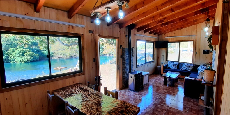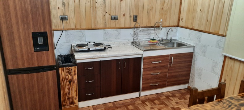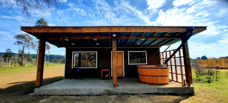 La cabaña esta equipada, cuenta con terraza techada, pancho, partilla, asador