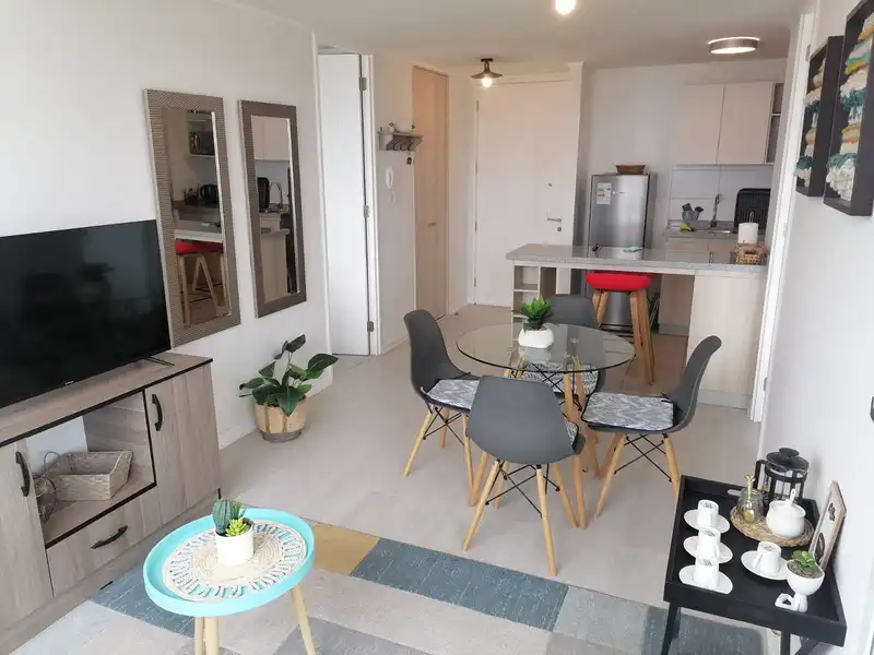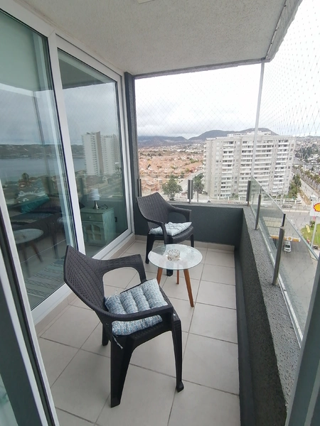 Tenemos dispuesto un nuevo y hermoso departamento, con una hermosa vista a la bahia de la herradura acondicionado para 4 personas cómodamente instaladas en edificio vista herradura ll, piso 11, con protección para niños en ventanas completamente amoblado, cercano a supermercado y estación de servicio,restaurantes, salón de té, local de sushi, cuenta con estacionamiento, conserje las 24 hrs, piscina, quincho, salas de lavado y secado, gimnasio.