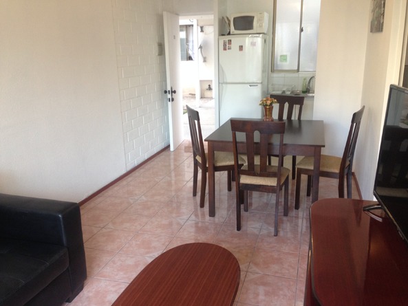 Se arrienda lindo departamento en primer piso ubicado en Condominio La Bahía, frente a playa La Herradura, comuna de Coquimbo. Cercana a comercio (supermercados, botillerías, comidas al paso) y con acceso directo a locomoción (ya sea al centro de Coquimbo como a La Serena).El inmueble tiene cocina full equipada, internet, TV, acceso a piscina , quinchos y a estacionamiento subterraneo. El departamento tiene 3 piezas, las cuales cuentan con 1 cama matrimonial y 3 camas de una plaza, por lo cual está pensado para 5 personas.