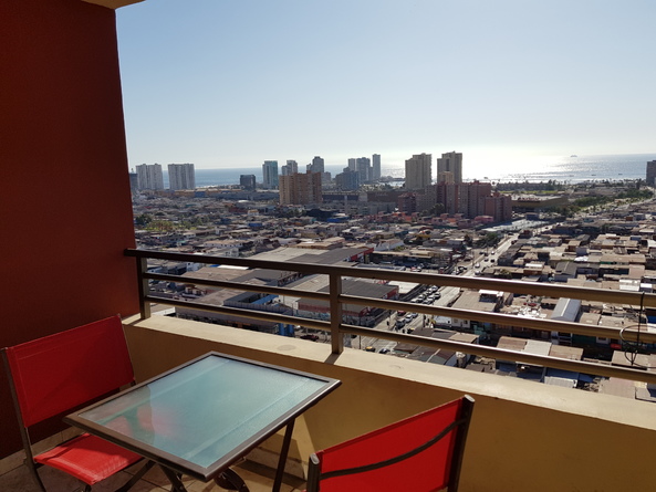Bello departamento , ubicado a 8 cuadras de playa cavancha, emplazado en piso 17 que permite una hermosa vista a la ciudad y playa cavancha. A minutos de mall plaza, supermercados, bomba de bencina. Locomoción a toda hora a la puerta del condominio. Con lo necesario para que sus días de vacaciones sean reconfortantes; lavadora, cocina equipada, toallas, agua caliente en todos los baños, 5 camas, etc. El condominio cuenta con área de juegos para niños, 2 asensores, hall, gimnasio.