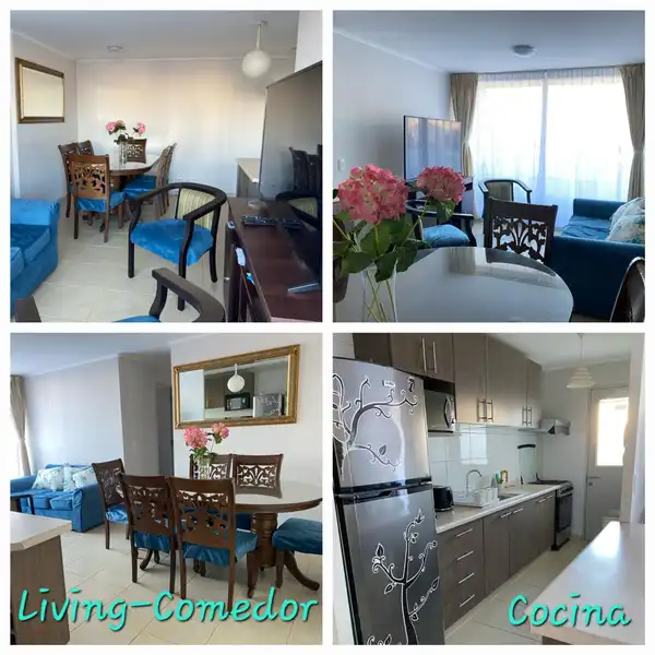 Cómodo y amplio departamento ubicado en segundo piso, Condominio Puertas del Mar, a tres cuadras de supermercados, malls y tiendas retails, y a minutos de la playa El Faro y avenida del mar.