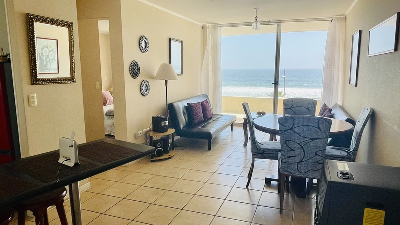 Este es un departamento grande, de un dormitorio, acogedor y luminoso frente al mar en La Serena, quinto piso, para 3 personas, con cama matrimonial y sofá cama, en edificio Oceanic, donde podrás tener un excelente descanso y hacer deportes en toda la costanera.