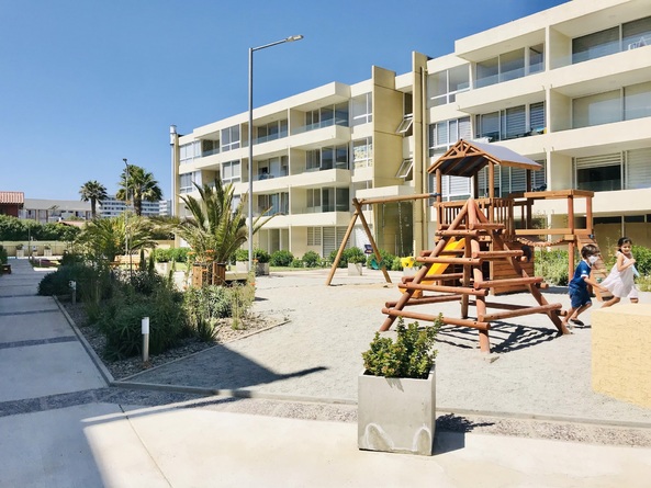 El condominio cuenta con piscina, juegos infantiles, conserjería las 24 horas.