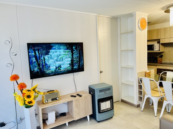 Tiene TV cable, Smart TV en living y dormitorios, internet ilimitado y de alta velocidad, equipo de música, todo lo necesario para cocinar, hervidor eléctrico, juguera, cafetera, hornito, etc., aspiradora, estufa a gas para el invierno, plancha, secador de pelo, lavadora.