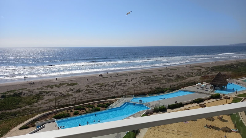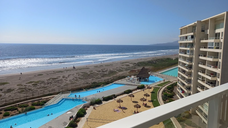 Excelente departamento a estrenar, con vista privilegiada al mar, desde todos sus ambientes y salida directa al mismo. Consta de dos dormitorios, hermosamente equipados, con capacidad para cinco personas, cocina comedor , dos baños y un dormitorio en suite con cama matrimonial y una segunda habitación, con una cama nido y otra de plaza y media., con televisión y WiFi. Disfruta de este complejo junto al mar, con una playa de arenas claras. Hay una increíble laguna navegable artificial, de 2,4 hectáreas. Cuenta también con tres piscinas, con solárium y palapa en una de ellas, playa interior de arenas blancas, con cancha de tenis, cancha de voleibol, área de quinchos, espacio de recreación y acondicionamiento físico, sector de juegos para niños, minimarket , seguridad las 24 horas, estacionamiento privado.