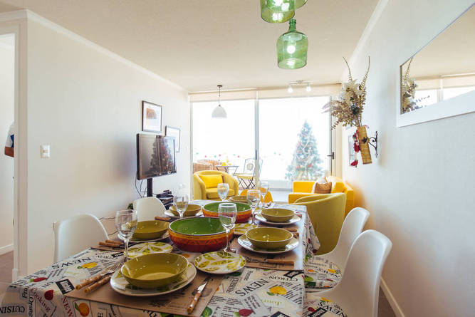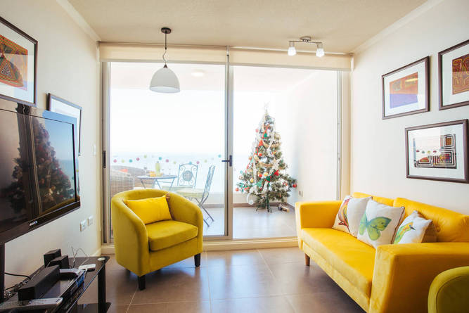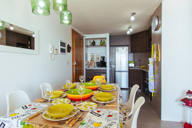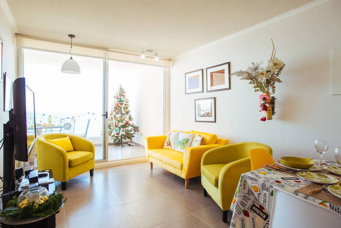 El departamento esta muy lindo. Bien mantenido y equipado. Solo le falta un poco de vajilla para los 5 huéspedes. La vista al mar y la bahía de Coquimbo es espectacular. La piscina del complejo, siempre limpia y con vista al mar. El gimnasio es chico y debería tener más ventanas hacia el mar para que circule la brisa del mar. Yanitza, un 10, o un 7 como dicen en Chile. Muy atenta, y con detalles con el huésped que hacen la diferencia.