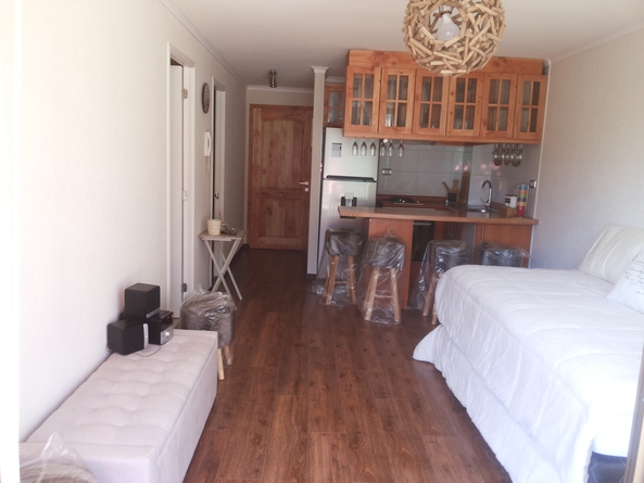 Bello departamento a solo 1,5 del centro de Pucon, habilitado cómodamente para 4 personas ,cuenta con todo lo necesario para tu ideal descanso ,rodeado de parques y a 15 minutos del centro de skie.Es un condominio cerrado conserjería las 24 hrs ,piscina,quincho y multicancha.