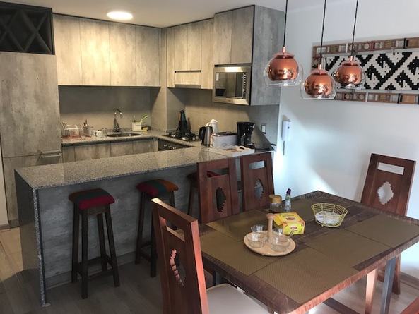 Hermoso departamento, equipado con muebles de excelente calidad y comodidad, ideal para el descanso. El condominio cuenta con 3 piscinas, un quincho, acceso privado al lago y se encuentra ubicado en el centro de la ciudad. Estacionamiento para un vehículo.