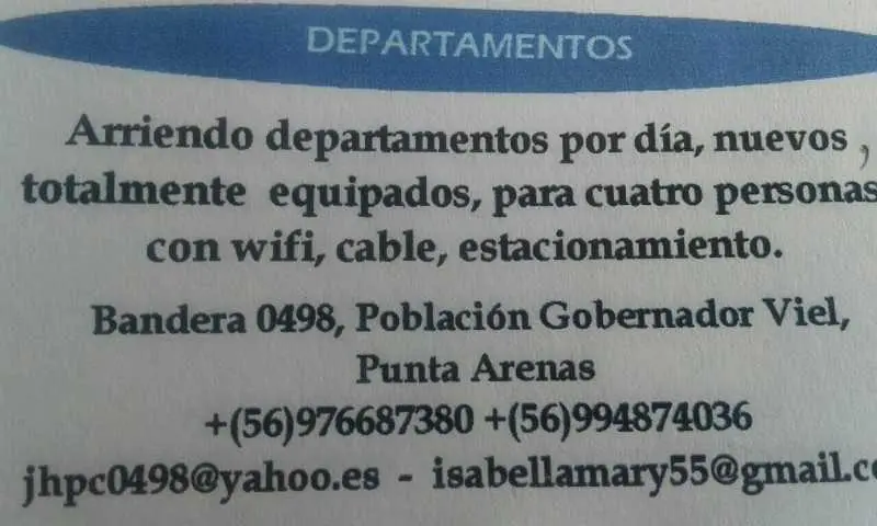 En Punta Arenas arriendo departamentos por día totalmente equipados para 4 personas.-