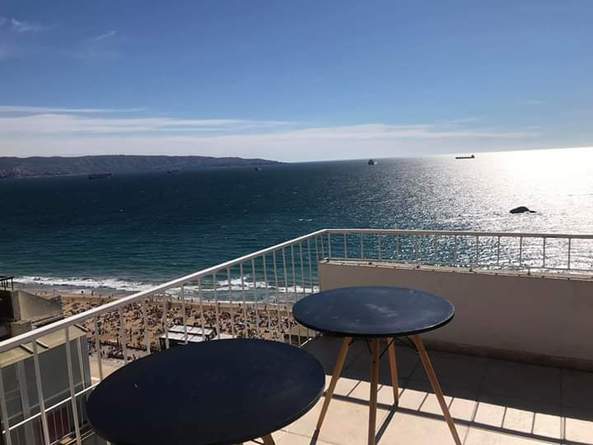 Se arrienda desde $80.000 por noche, Maravilloso departamento en la primera línea de edificios del sector 5 de Reñaca, frente a la playa con vista a toda la bahía de Reñaca, Viña del Mar y Valparaíso.