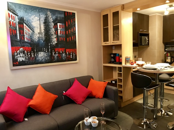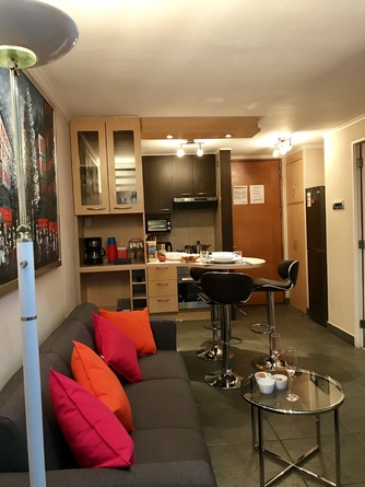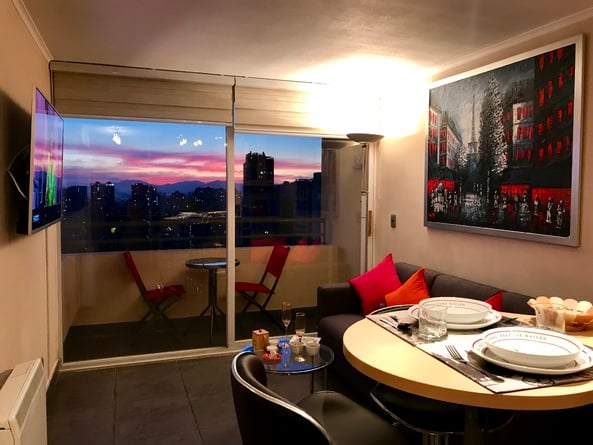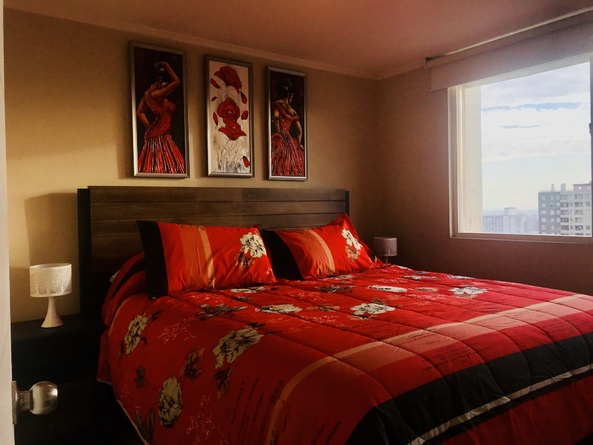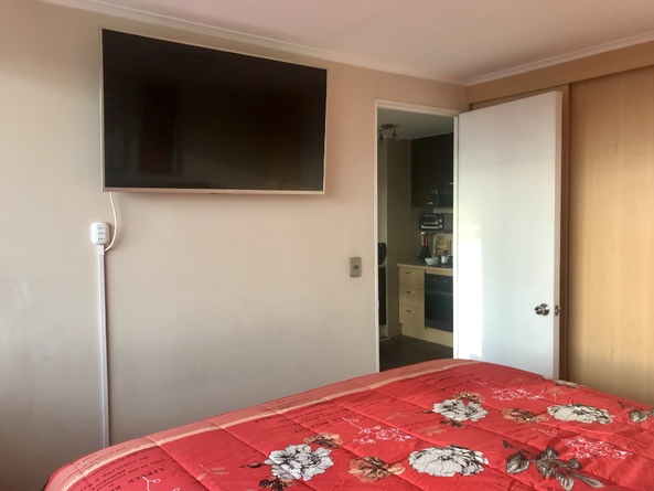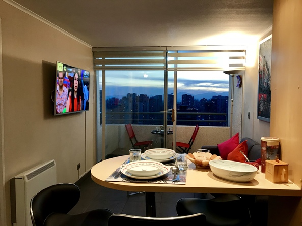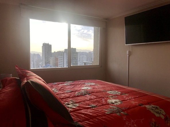 Mi departamento está en el piso 22, con hermosa vista despejada en pleno centro de Santiago, es de 1 dormitorio con cama europea tamaño king. Cortina black out en dormitorio, te permite descanso total con ventanas de termopanel para aislación de ruidos. Wi-Fi ilimitado y de alta velocidad, para quienes viajan por trabajo, 2 Smart TV, en living y dormitorio, conectados a Cable, equipo de música, cocina equipada con todo lo necesario, microondas, cafetera, hornito, etc. Estufa eléctrica