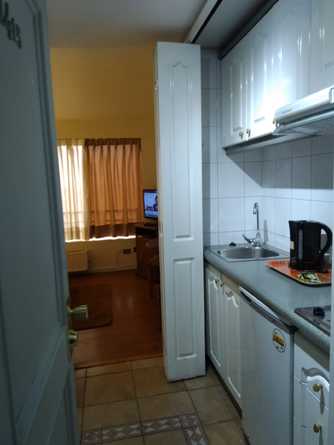 Departamentos de un ambiente, con cama matrimonial, pequeño living con sofá cama, cocina alhajada y baño completo.