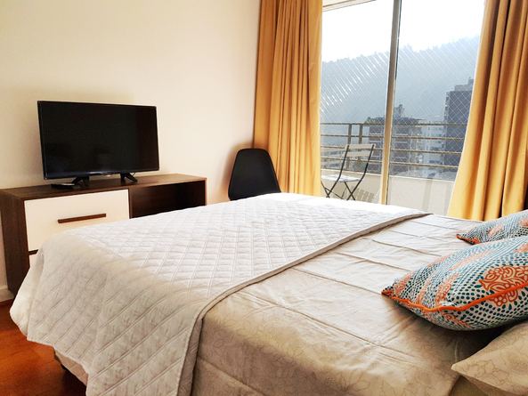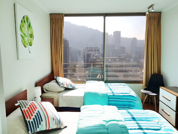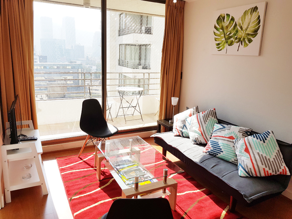Departamento ubicado en Nueva Providencia 1372. Hermoso departamento muy bien ubicado. Cuenta con 2 Habitaciones y 2 Baños y un salón con cocina americana completamente equipada. Departamento en la mejor zona de Santiago de Chile. Cuenta con piscina panorámica, solárium y quincho en la última planta de edificio.