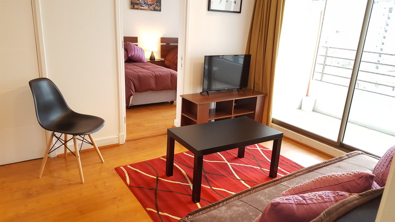 Departamento ubicado en Nueva Providencia 1372. Hermoso departamento muy bien ubicado. Cuenta con 2 Habitaciones y 2 Baños y un salón con cocina americana completamente equipada. Departamento en la mejor zona de Santiago de Chile. Cuenta con piscina panorámica, solárium y quincho en la última planta de edificio.