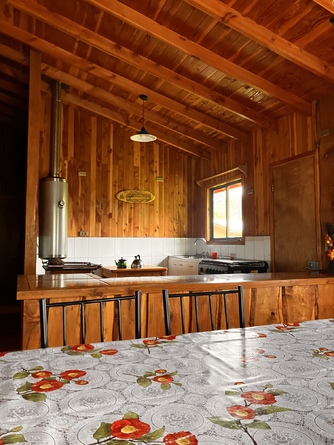 casa de 100 metros cuadrados, tres dormitorios, un baño calefon de encendido automático, living comedor y cocina americana, equipada completamente, cable Dtv, amplio estacionamiento con sitio independiente dentro de una hermosa parcela, entrada con portón eléctrico, lugar muy tranquilo y seguro, (nosotros los dueños vivimos acá mismo por lo tanto eso entrega más seguridad), estamos en el km. 12 entre las dos ciudades (Vilarrica y Pucón ),