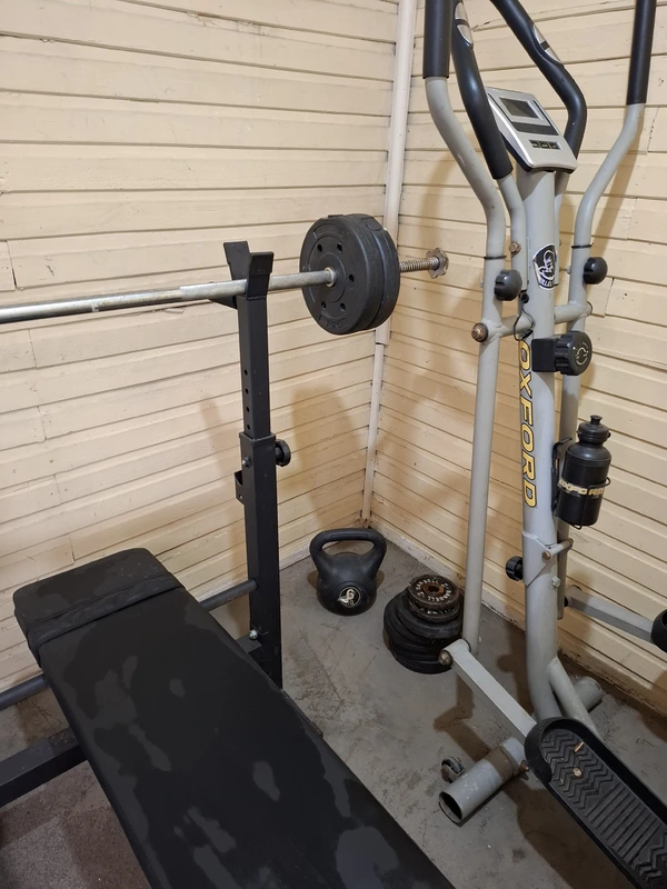 Parrilla para asados, pequeña sala de ejercicios y un baño adicional en el sector de patio.