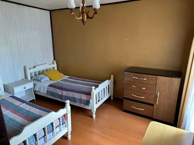 La tercera habitación con cama de una plaza y media, y una plaza.
