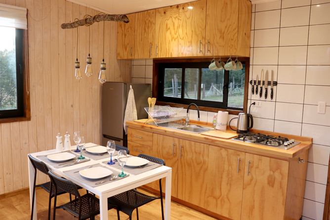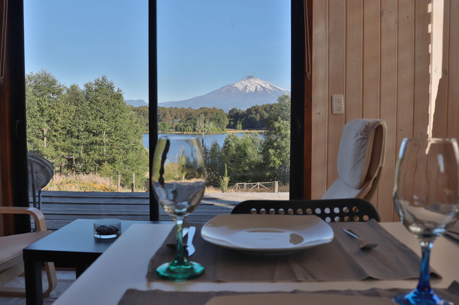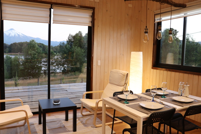 Linda cabaña completamente equipada con vista al volcán Villarrica y laguna, en exclusivo condominio privado.