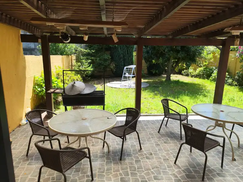 Gran terraza techada, combustión lenta(no incluye leña). -