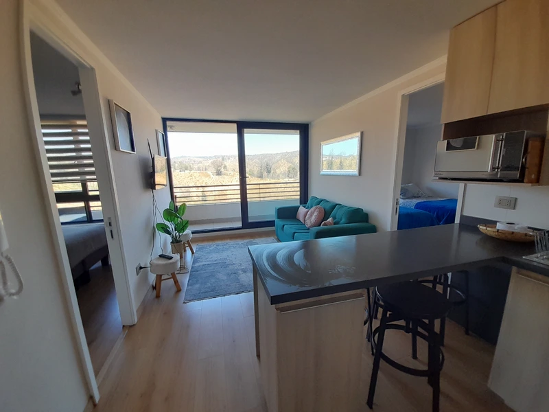 Depto 15 minutos de la playa con estacionamiento propio. 2 dormitorio (2 baños) full para 4 personas muy cómodas con sábanas, lavadora con secadora y secador pelo. Posible 5ta a 6ta persona, traer sábanas y frazadas para cama 5ta y 6ta.