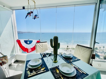 Torres puerto pacifico a orillas de la playa, departamento cómodo y bien equipado.hermoso departamento con una vista privilegiada hacía el mar.habilitado para 7 a 9 personas, a pasos de mall marina arauco, centros comerciales, cines, supermercados, bancos, cafés y otros.piscinas...mesas de pool.....
